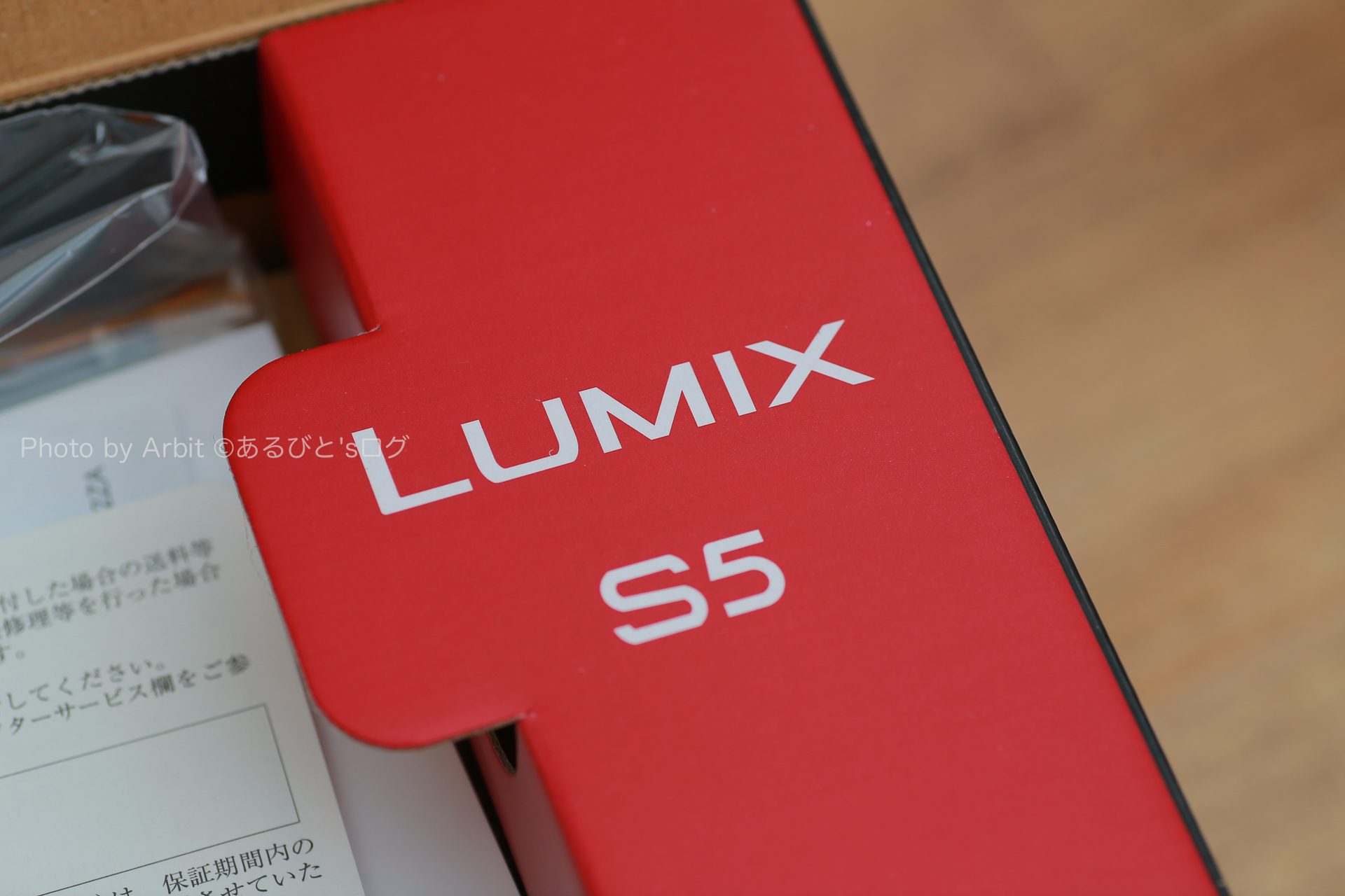 上蓋を開けると赤にLUMIX S5の文字が目に飛び込んできます。
